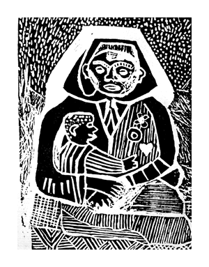 I decided to go on with the drawing work. On a certain day here came a man from Cape Town, Cecil Skotnes and his wife, and he taught me to do lino cutting. It was the first time I see it, and I start learning.